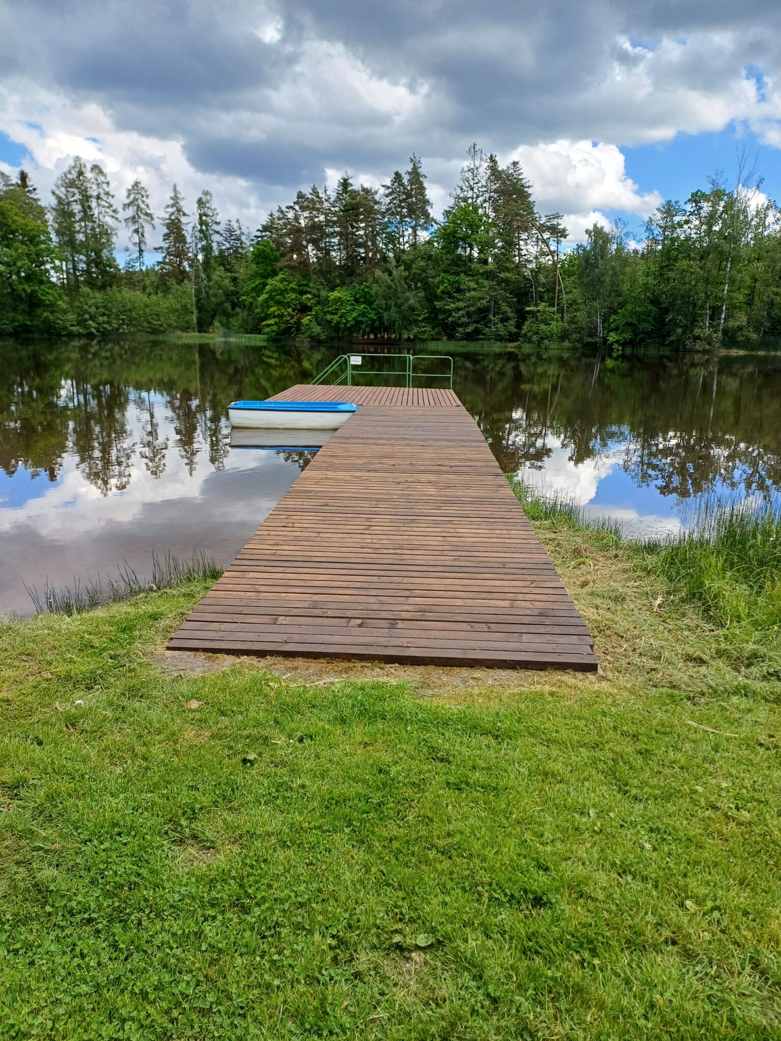 Celý areál se nachází na velice klidném místě uprostřed lesů, na břehu rybníka a čistou vodou, kde můžete vidět i silně ohrouženou rosničkou zelenou. Střechy chatek jsou stíněny stromy, takže i v nejteplejších dnech je v chatce i okolí příjemný chládek